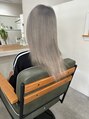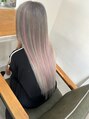 地毛のカラーに合わせてシルバーでロングヘアにし、ピンクのハイライトを入れてデザインスタイルに(^^)/