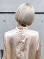 シンプルなワンレンスタイルに薄めのワイドバングをつくる事でモード×カジュアルに。ブリーチは2回して出来るだけホワイトカラーに。オンカラーで黄身を消すパール系のカラーを薄く入れています。 ミニボブ/タッセルボブ/ワンレン/ぱっつん前髪