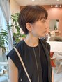 コンパクトなショートボブスタイルです。耳にかけた時にすっきり見えるように耳後ろのたまりやすいところはしっかり量を調整してスタイリングしやすいようにカットしています。カラーは赤みを抑えたベージュブラウンで柔らかな印象に仕上げました◎