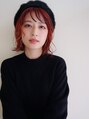 肩くらいのレングスでウェーブをつけたミディアムスタイルです。ブリーチしてチェリーレッドカラーを乗せて少し個性的でおしゃれなヘアスタイルです。帽子など被り物との相性もバッチリです◎