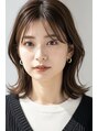 顔まわりに動くレイヤーを入れて小顔見えに。透明感ブラウンでツヤをプラスし、軽さのある大人ミディに。毎日のセットも簡単です。