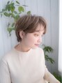 ミルクティベージュカラーのショートスタイル。ショートスタイルの中では短すぎない長さの設定なので初めてのショートスタイルに挑戦する方にもおすすめです。柔らかい上品なカラーにすることでショートの子供っぽい印象を中和しています。