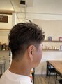 毛量が多く、スタイリングしにくいと言うことで、サイド&バックネイプは、ツーブロですきりしてます。トップフロントは、レザーとスライドカットで質感調整してます!