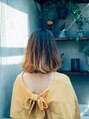 顔まわりにレイヤーを入れて毛先に動きをつけたフワフワミディアムスタイル。バングにしっかりめにカールをつけてボサっと感を。ただボサボサにするのではなくバックは毛先を中心にカールをつけてメリハリをつけています!