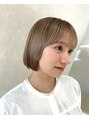 stylist 福住 colorist 小柴 耳にかけた時の前髪の長さがポイントです自然と乾かしただけでおさまるボブ大人気です 全体のベージュと毛先のオレンジがマッチしていて落ち着いて見えるけど個性もあるようなカラーになってます。
