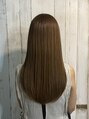 最高級髪質改善ハリスノフカラーエステ+ハリスノフトリートメントによる施術例。カラーエステでさらに透明感や艶感がアップします。カットは前上がりのワンレングスで、艶感を作っていきます。