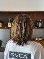 多毛でお悩みのお客様です。毛量が多すぎていつもしばっているとのこと。長さはあまり変えずトップ、顔周りにレイヤーを入れて軽くしています。すきすぎてしまうと、広がってしまう(今回の場合、ブリーチとクセが少しある)ので頭の丸みに合わせて切っています
