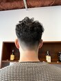はちまわりが広がりやすく、トップが寝て見える事がお悩みのお客様です。サイドを刈り上げて広がりを抑えています。トップの長さは短く切りすぎるとさらに潰れてしまうので長さをキープ。前髪をあげて、更に背が高くみえるように仕上げています。