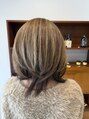 - ハイライト施術を行い、毛量の多さを視覚の面からも改善しています。立体感が出て軽さのある印象に。