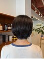 鎖骨まであった髪をバッサリショートにさせていただきました。全体に毛量が多く。トップがつぶれやすいのでしっかりと頭の形に合わせてレイヤーを入れて扱いやすくしています。