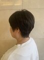 後ろの丸みが綺麗なショートスタイル。軽くワックスを揉みこむだけで決まる楽ちんヘアです。カラーは少し濃いめのグレージュで白髪とのなじみ感を出しています。