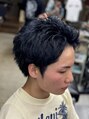 スパイキーショートに人気のブルーブラックでさらにシャープな印象に。真っ黒飽きた方にもおすすめ。ブリーチ必要ですのでダブルカラーのメニューを選択してください。
