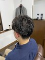 周りはツーブロックと刈り上げでサッパリとしつつビジネスパーマをかけてボリュームも出しつつカッコよく仕上げました。