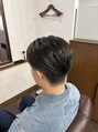 サイドはツーブロックで刈り上げて、トップは軽く流してセットできるスタイルです。ジェルで簡単に出来ます。