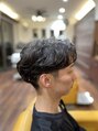こんにちは!ASUKAです!センターパート× 緩めパーマは今のトレンドで,これさえやっておけばイマドキ男子に大変身です♪パーマで緩く,クセを付けてあるので,普段自分でヘアセットをする時もか・ん・た・ん!!〈フェザーパーマ/メンズ/理容室/一宮〉