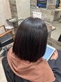 まとまりの良いワンレンボブに、艶を引き立てる深みブラウンをプラス。シンプルなシルエットでも面が綺麗に見えるよう質感を丁寧に整えています。重さは残しつつ首まわりはすっきりで、毎日のセットもしやすい大人上品な仕上がり。( 3枚目ビフォー )