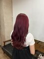 ブリーチなしでもここまで深く鮮やかに発色するチェリーワインカラー。暗すぎず派手すぎない絶妙な赤みで、巻いた時の立体感とツヤがぐっと引き立ちます。室内と自然光で色の表情が変わるのも魅力で、色持ち重視の方にもおすすめ ♪( 3枚目ビフォー )