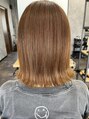 肩上、切りっぱなしボブです!レイヤーが入ってないので、仕上げで外ハネにしたり、カラーを明るめにすることで、重く見えないように仕上げました。ナチュラル/ボブ/ミディアム/レイヤー/カラー/パーマ/白髪染め/リタッチ/学割/縮毛矯正/倉敷