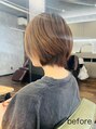 襟足、耳後ろ付近が特に毛量がしっかりあったので、毛量調整と、長さのバランスを考えてカットしました。ナチュラル/ボブ/ミディアム/レイヤー/カラー/パーマ/白髪染め/リタッチ/縮毛矯正/学割/ヘアセット/ヘアアレンジ