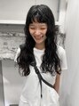 ヘッドアクセをつけても可愛いロングパーマスタイル前髪/アンブレラカラー/ウェーブパーマ/ベリーショート/ダークアッシュ/ニュアンスパーマ