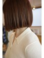 ナチュラルな自然に収まるボブスタイル。柔らかさのある赤みの少ないブラウンでカラーしています。オイルを付けて簡単にスタイリング出来ます◎