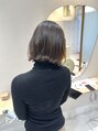 ぷつっとラインがかわいいミニボブ。猫っ毛さんのクセの感じを活かした柔らかいシルエットがポイントです◎カラーは明るめのオリーブベージュで赤みを抑えています。