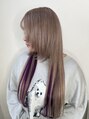 ブリーチカラーミルクティー、顔まわりにレイヤーを入れて、エクステでウルフロングに。インナーパープル