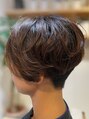 サイドは2ブロック、バックも刈り上げからつなげて前下がりベースのショートに♪ トップはゆるふわパーマで