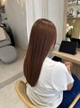 ロングのストレートヘア。前上がりにカットしているのでうしろに持ってきた時にシュッとuの字になります。明るめカラーをしていても髪の体力次第で縮毛矯正はかけられます☆明日から乾かすだけでOKに♪【新丸子・武蔵小杉・縮毛矯正】