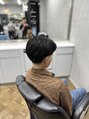 安定のセンターパートにバーバー業界トレンドのテーパーフェード。髪質、毛量、骨格を見極めて適切な長さ、量に調整。ビジネスシーンに休日もキマるスタイル。