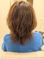 エイジングによる髪質低下とパーマの繰り返しで出るちりつきを、髪質改善カラーで柔らかく整えながら透明感ベージュに。トップが潰れやすい悩みも、ふんわり動くウルフカットで自然なボリュームを再現。扱いやすく軽い仕上がりです。