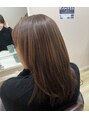 少し硬さがあり後頭部に若干のクセがある方です。髪の量もしっかりあり、全体的にいつもボリュームダウンをしたい方。酸性の液で低ダメージでストレートパーマと、動きの出やすいやりすぎないレイヤースタイルに仕上げました^ ^