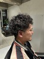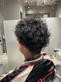 トップから後ろにかけて動く強めのカールに、タイトに締めたサイドを組み合わせ、膨らまない立体感と扱いやすいバランスを両立したパーマスタイルです。ただ強くかけてるだけでなく、スタイル形成する上での強いカールの中でも調節しているパーマです。