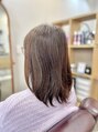 お客様からバックショットのご提供いただきました。今まで長さをキープされていた状態から前下がりのボブにチェンジもっと短い方がいわゆる前下がりボブになるのですが、襟足の癖毛と長め・重めを維持したかったのでまずはこのくらいからご提案。