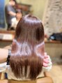 カラーを繰り返しているお客様にピンク系カラーをさせていただいたスタイルです。ブリーチなどはされていませんでしたが色落ちがが目立つ状態だったのでパサついて見えないようにコーラルピンクでカラーしてツヤ感を感じるように仕上げました。