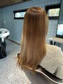 肩ラインでカットし、上から軽くレイヤーを入れることで、動きとまとまりを両立させたナチュラルロングスタイルに。トリートメントで内部までしっかり補修し、手触りのなめらかさとツヤのあるロングヘアに仕上げました。