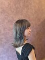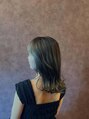 顔まわりを中心にレイヤーを入れたお手入れ、アレンジが楽なミディアムスタイル。たっぷり入れたハイライトで透明感を出したオリーブグレージュ。