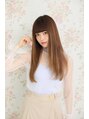 前髪が重ためのローレイヤースタイル。軽さと動きを出すために顔まわりはレイヤーを入れて優しい雰囲気を出す為に毛量も調整しています。