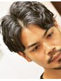 重めにカットすることで男らしさを演出したセンター分けスタイルです。周りはツーブロックにしてありますが、あまり差がくっきりしないように自然な仕上がりに。