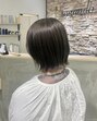 今回は面長を補正したショートスタイルに チェンジさせて頂きました 前髪からサイドバングにかけて横に流れる ラウンドをいれます そのままサイドにつながり 耳の高さがふんわりボリュ…