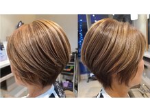 ダメージレスカラーと髪質改善Trで艶髪♪実力派スタイリストのカットで扱いやすい《大人ショート》に!