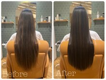 1度の施術で別人級美髪へ。癖、パサつき、広がる髪を整え触れたくなる艶髪へ。カット&ケアカラー¥9900~