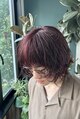 【ブリーチなし】ワインレッド×メンズボブ、パーマ