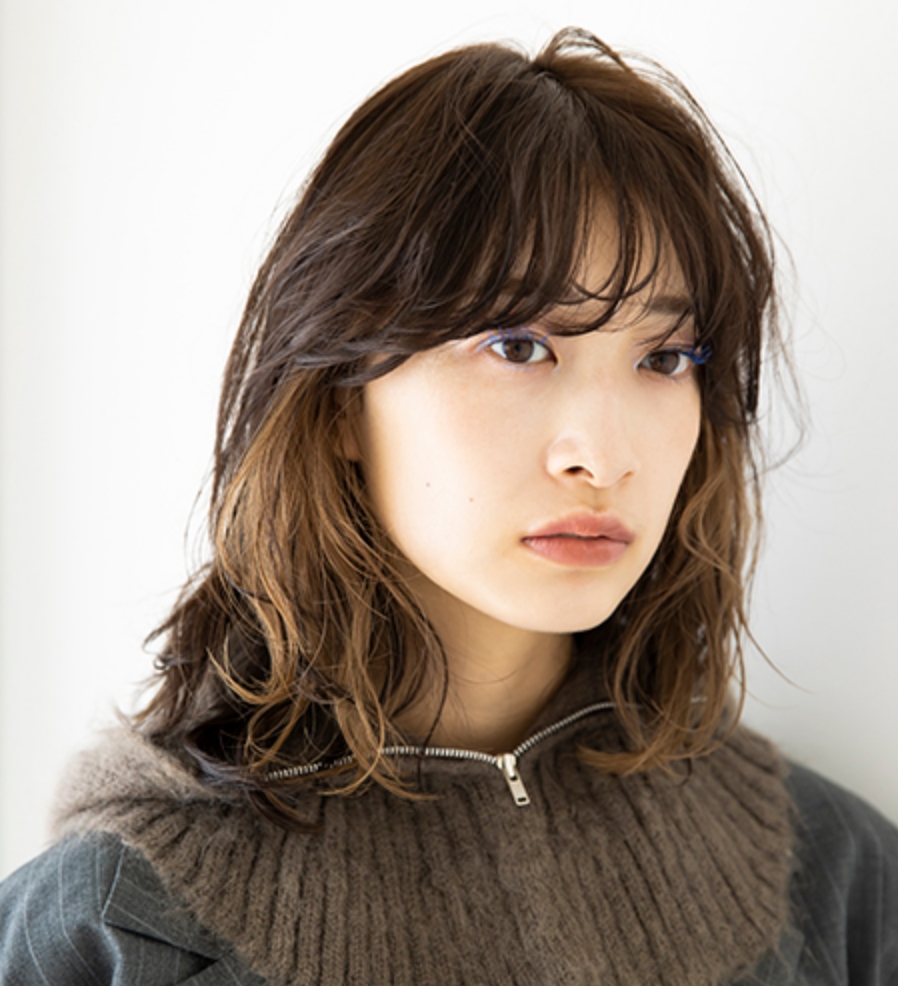 お洒落感度の高い女性たちがこぞって通うSYANから、この冬イチオシのスタイルが到着。「今回はパーマを主役にしたミディアム。レイヤーカットに合わせて大きなカール感を出し、クセ毛のような自然でカジュアルな可愛さを目指しました。さりげなく効かせたイヤリングカラーもポイント。この冬注目のトラッドスタイルにもしっくりハマると思います」と、清水 優子さんからアドバイス。