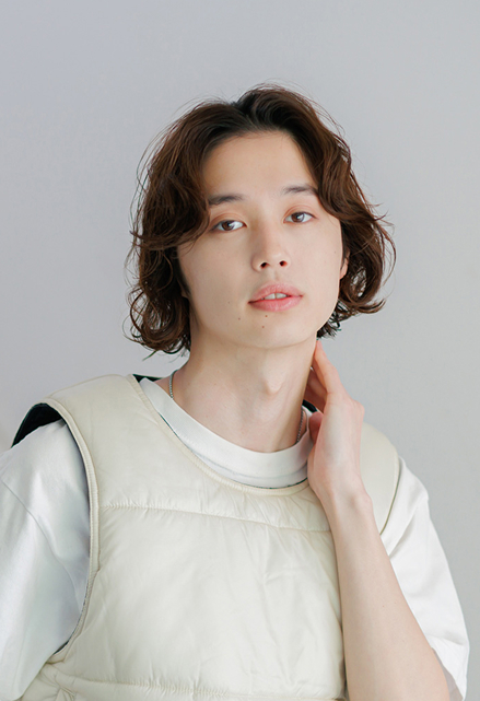 春に向けて、みんなと違ったトレンドヘアにチャレンジしたい人はこちらのスタイルに注目。担当してくれたのは、nanuk shibuyaのryuyaさん。「ショートから伸ばしてミディアムにするメンズが増えている中で、あごラインのボブパーマがおすすめ。長さがあっても重く見えないカットとパーマで、清潔感のあるクリーンな印象に。ややドライに仕上げるスタイリングがこの春の雰囲気に似合うと思います」。