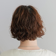 毛先中心のニュアンスパーマ。表面にスパイラルの動きをつけているのがポイント。