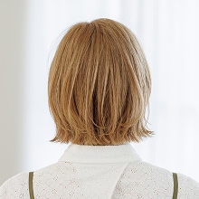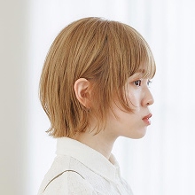 髪色はまろやかなベージュ系。赤味をおさえた肌なじみのよいカラーなので、ツヤが引き立ち透明感あふれる印象に見える!