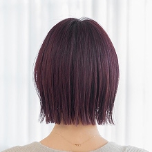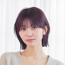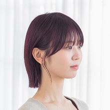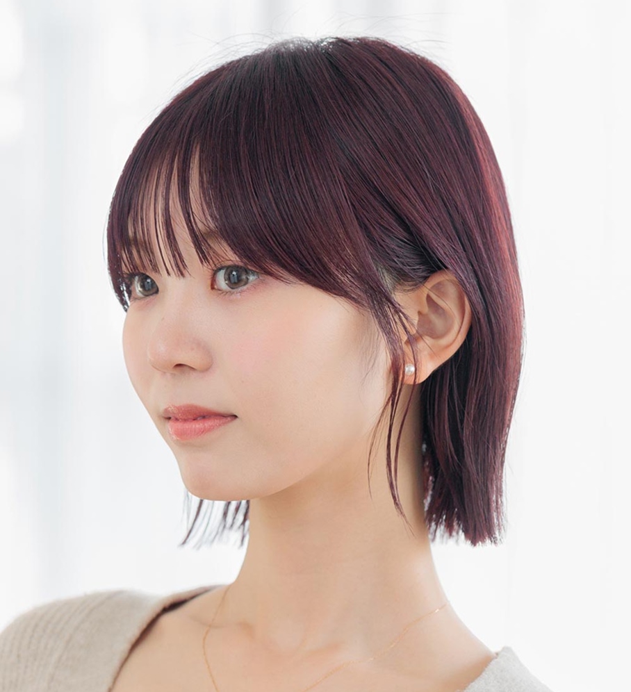 髪色は暗めのピンクバイオレット。光に当たると色味をふわっと感じ、肌色もトーンアップするよう!